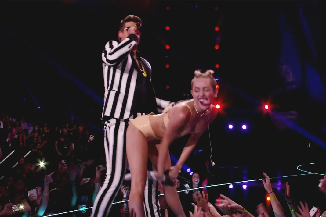 Looking to finally shed her Disney image for good, Miley Cyrus took the VMA stage in 2013 to perform her hit single "We Can't Stop." Twerking, flashing her tongue, and grinding up against Robin Thicke's groin had Hollywood buzzing about her new racy persona for days, weeks and months after. It's a publicity stunt that seemed to work and shot Miley to the top of the charts.