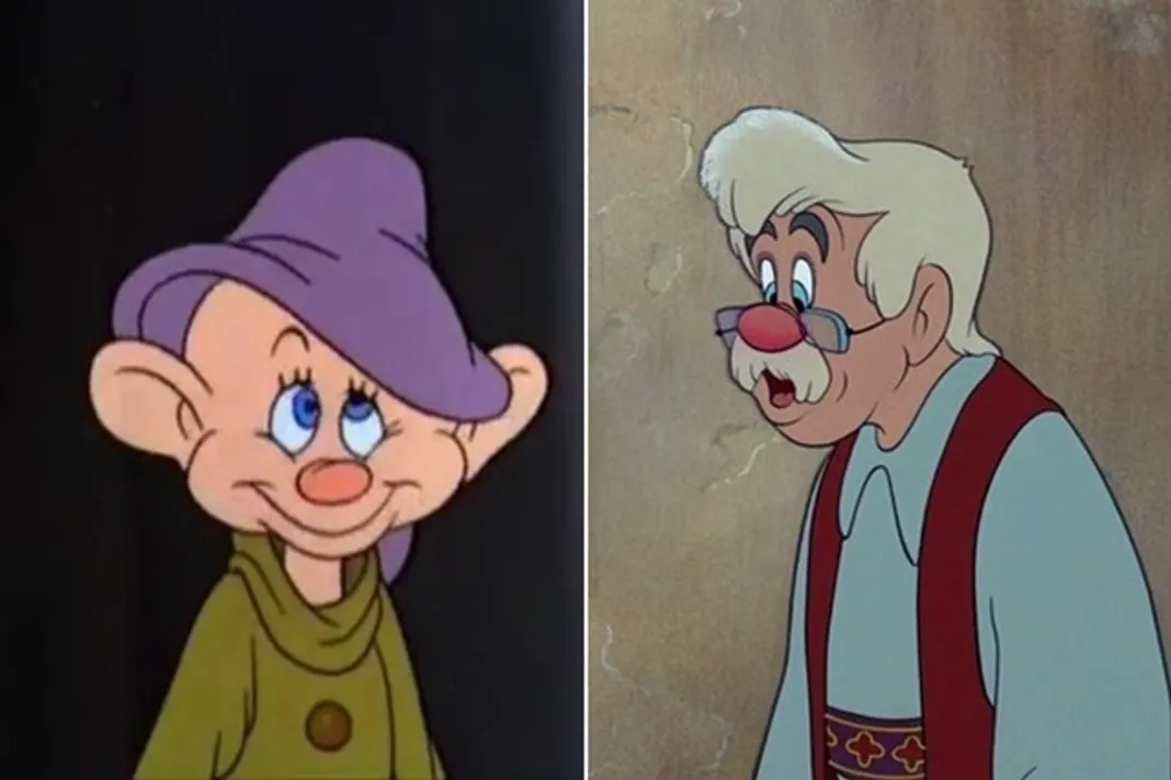 11. Dopey from Snow White and Geppetto from Pinocchio are also the same person.