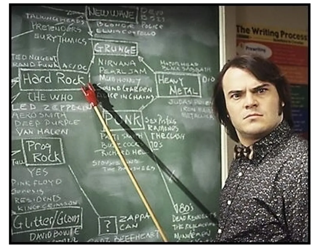 Director Richard Linklater who helmed the coming-of-age comedies Slacker and Dazed and Confused did so successfully thanks to his dead-on portrayal of indolent high school teens. In School of Rock Linklater creates characters that are just as earnest but really focuses on one lone star: Black. Thankfully the director takes the time to introduce moviegoers to the fifth graders without being overly cute or excessively sappy as is the way all too often with movies involving preteens. They’re not just pivotal in the plot they’re also the way by which Dewey’s character finds self-discovery; each of them is grappling with some sort of issue be it low self-esteem or weight problems and Dewey’s surprise ability to reach out to them without talking down to them transforms him into a caring responsible person. When one of the kiddie band’s backup singers is worried that people will make fun of her weight Dewey offers his own stout figure as an example: “Once I get up on stage and start doing my thing people WORSHIP me because I’m sexy and chubby man ” he tells her. The ingenious script was written by Black‘s co-star White who penned the Jennifer Aniston sleeper hit The Good Girl and it not only encourages “sticking it to The Man ” but also stresses the importance of bucking conformity and embracing individuality.