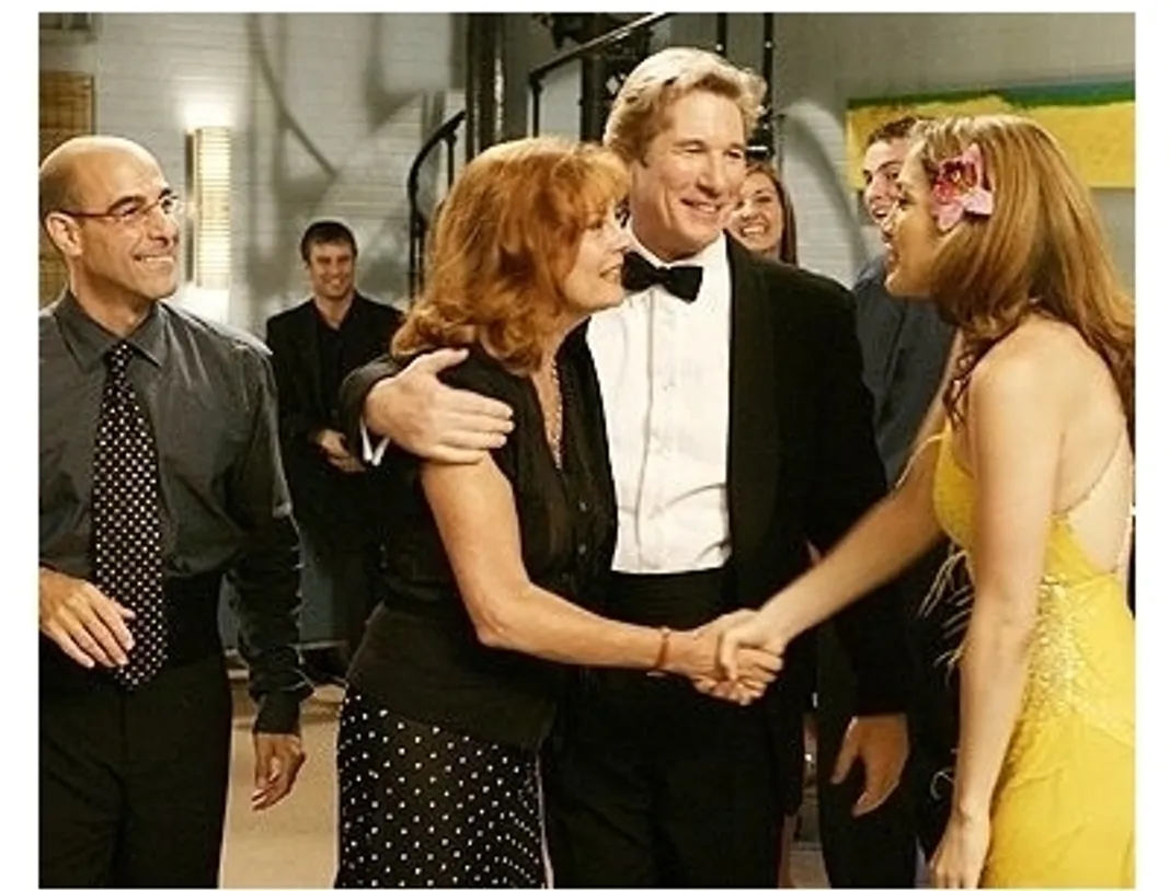 Gere‘s sure got happy feet these days. First the guy dropped jaws when he actually tap danced his way through the Oscar-winning Chicago. Now there’s Shall We Dance?. What’s next? Gene Kelly‘s part in Singin’ in the Rain? In all fairness Gere plays John as an ordinary but charming middle-aged man who also just happens to have an affinity for ballroom dancing. It isn’t in any way a stretch for the charismatic actor but he does have an uncanny ability to draw you in once he glides across the floor and flashes that sexy smile. As John’s patient wife Sarandon doesn’t go out on a limb either exuding her usual warm intelligence. As a married couple Gere and Sarandon do an excellent job keeping things refreshingly grounded. It’s a marriage you immediately recognize–they’ve been together for so many years they’ve developed a loving familiarity but are trying to find ways keep it exciting. The supporting cast also do a great job livening up the proceedings including Lisa Ann Walter (Bruce Almighty) as the been-around-the-block ballroom dancer Bobbie and Stanley Tucci whose turn as Link a lawyer by day/salsa dancer by night is hilarious. Of course the one you really want to watch dance is Jennifer Lopez who sure does know how to sashay her way around her partners. Unfortunately when not dancing the rest of Lopez‘s performance is fairly stiff. Her sad sack story about some tragic past and losing her desire to dance competitively is just plain dull.
