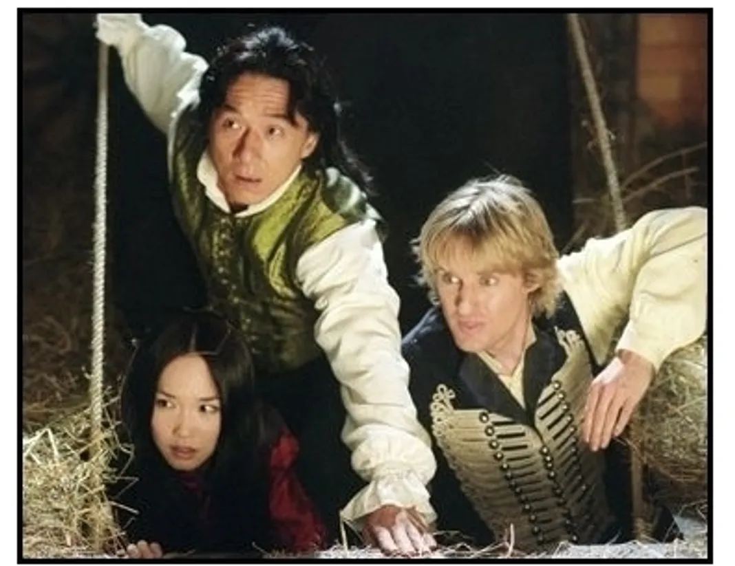 The Chan/Wilson comic duo works well once again. Chan‘s easygoing unassuming style matches well with Wilson‘s smarminess. Wilson seems to have become one of those actors-for-hire saying yes to just about anything offered to him (why else would he have done I Spy?) ; still we know he has the goods when he turns in hysterical performances in quirk-fests such as The Royal Tenenbaums. There definitely is something special to his pairing with Chan who fits into Hollywood’s mainstream like a glove. The only way to aptly describe his abilities is to compare him to Fred Astaire and Gene Kelly who could dance with anything from a woman to a hat rack and make it look so smooth. Granted Chan is getting a little long in the tooth (rumor has it he didn’t perform all the stunts) but the combination of martial arts and Chinese acrobatics he displays is stupefying. Wong handles herself very well getting in a few swift mean kicks of her own. As well baddies Gillen and real-life martial arts master Donnie Yen who plays a Chinese rebel aligning himself with Rathbone snarl with the best of them. It is intriguing to see Yen and Chan go at it in their very different yet mesmerizing styles.